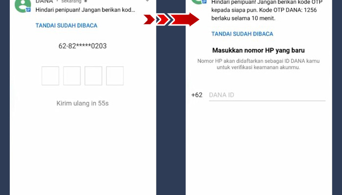 Kode OTP ini dibutuhin buat verifikasi bahwa emang diri kamulah pemilk dari akun Dana tersebut, sehingga dapat mencegah orang asing atau hacker mencuri semua saldo akun kita.
