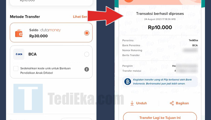 Selain dari Flip ke Dana, kita juga bisa kok transfer duit dari Flip ke BCA, dan dengan sumber dana baik dari saldo Flip maupun bank lain.